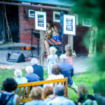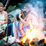 Wieczór zamkną performance Andrzeja Sieka „Opowieści drzew” pełen ekspresji i charyzmy który odbył się przy płomieniach ogniska i rytmach bębna, w spowitym ciemnościach ogrodzie.