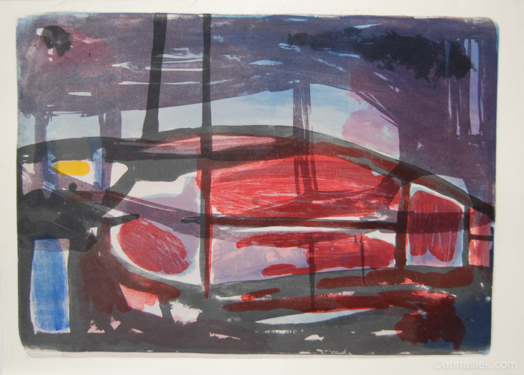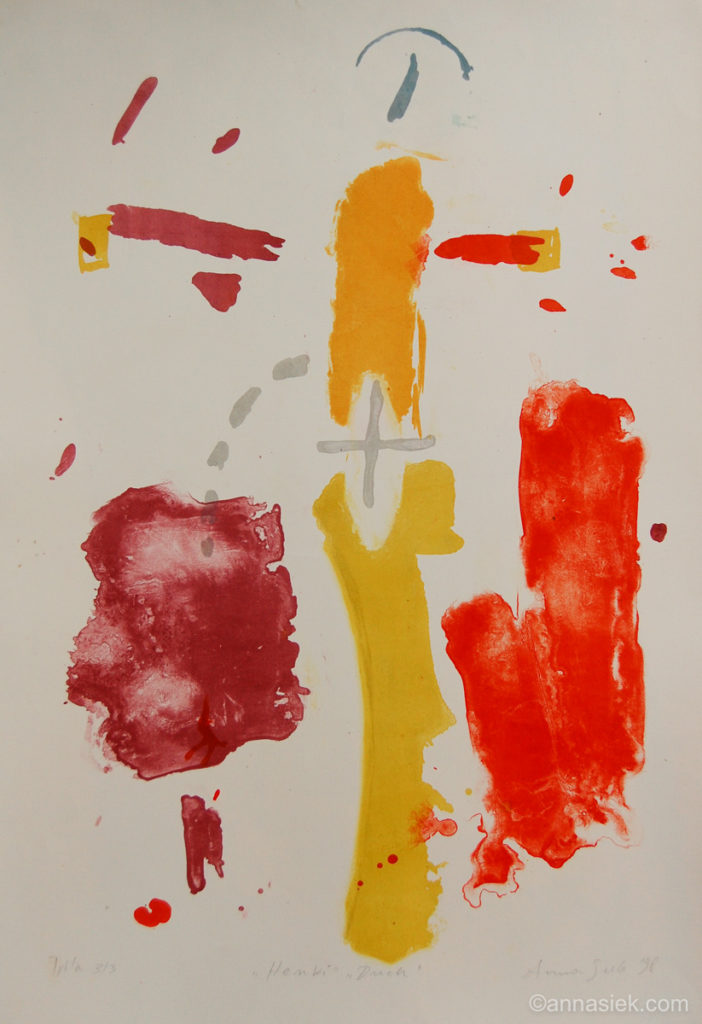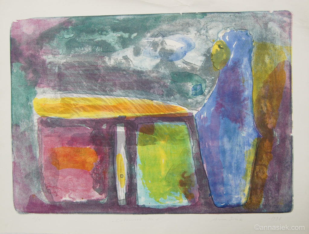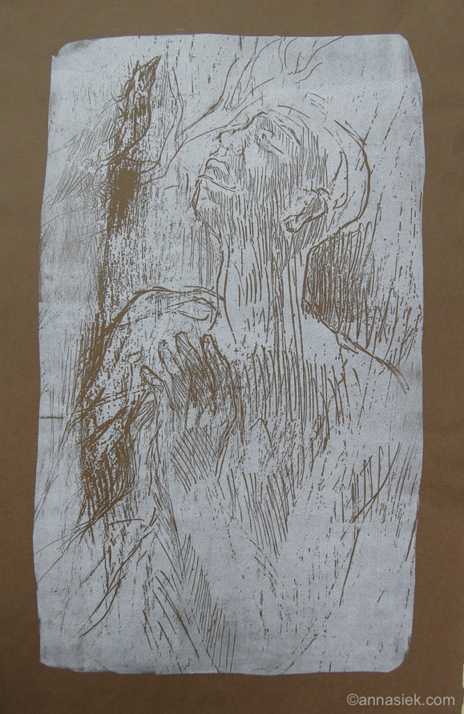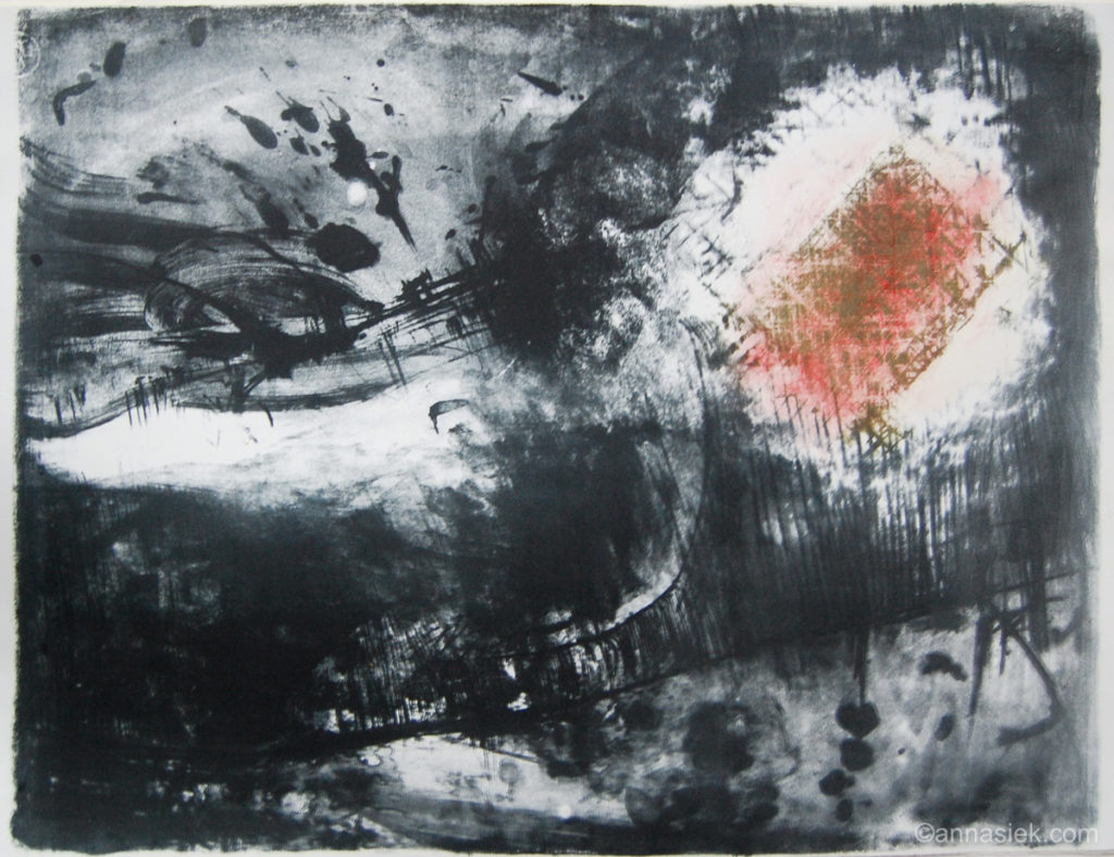 Odbitka graficzna jest dla mnie czymś w rodzaju śladu po idei, która powołała ją do życia. Wykonując je często łączę różne techniki graficzne i malarskie, takie jak: litografia, sucha igła, akwaforta, akwarela, pastel. Nierzadko też wracam do wcześniej wykonanych odbitek i kontynuuję pracę nad nimi, aby „przemówiły” ponownie. Dużą część pracy przy ich wykonywaniu zajmuje technika i planowanie, jednak właśnie wtedy, kiedy udaje się o tym zapomnieć, odbitki zaczynają żyć własnym życiem. Te właśnie potknięcia czy nieudane próby, które powodują, że trudno trzymać się wcześniej powziętego planu, wyłaniają na światło dzienne to, co najważniejsze dla danego pomysłu często lepiej uwydatniając zamysł idei.