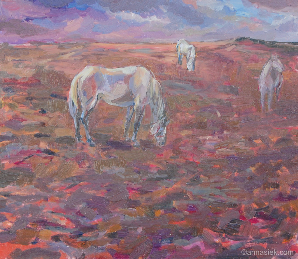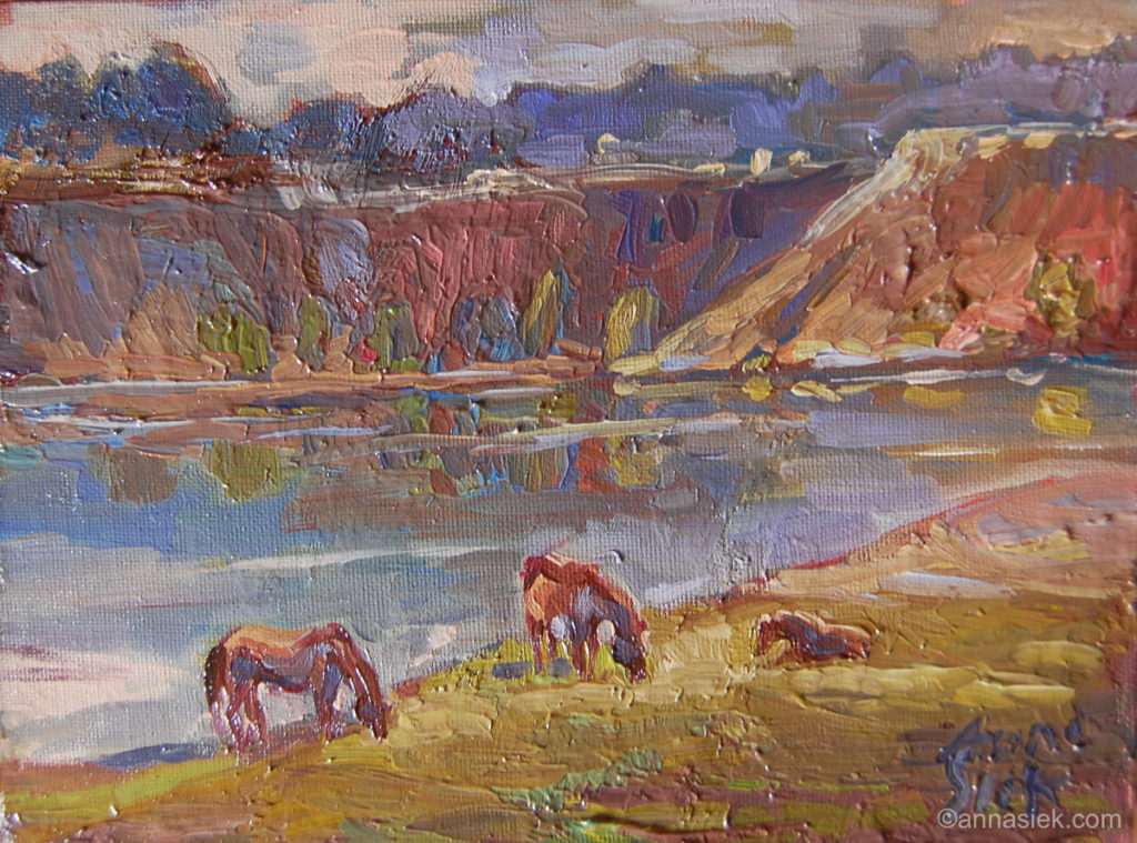 Prezentowane obrazy pochodzą z ostatnich kilku lat, są efektem wielu plenerów jak i pracy w samej pracowni, która często bywa również kontynuacją pomysłów lub motywów znalezionych w plenerze.