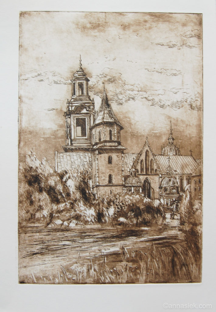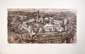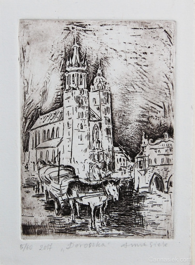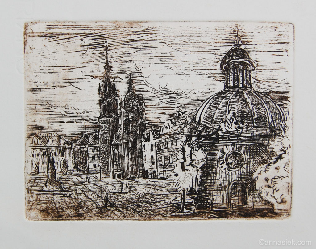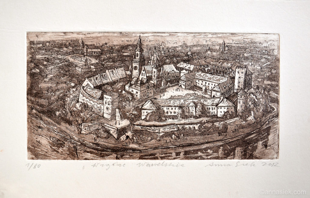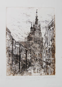 Graficzne pejzaże to głównie malownicze zakątki Krakowa, miasta które jest mi najbliższe, wykonane są w technikach akwaforty i akwatinty.