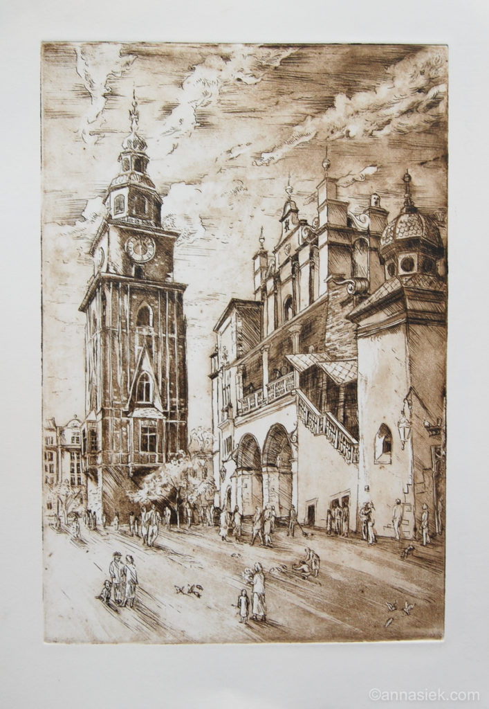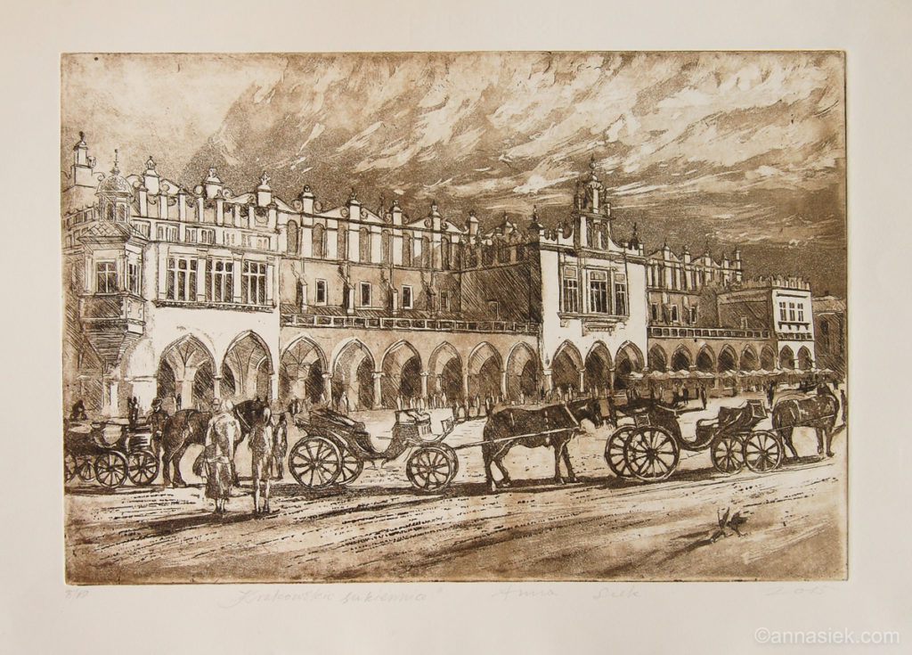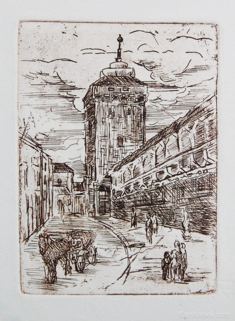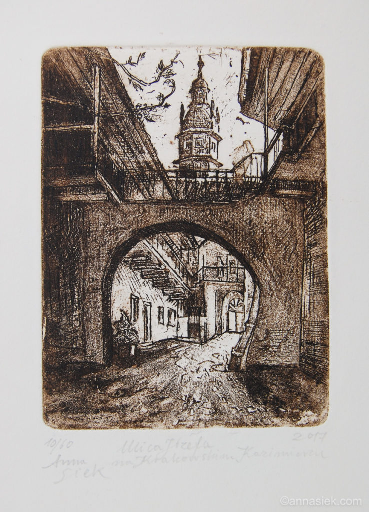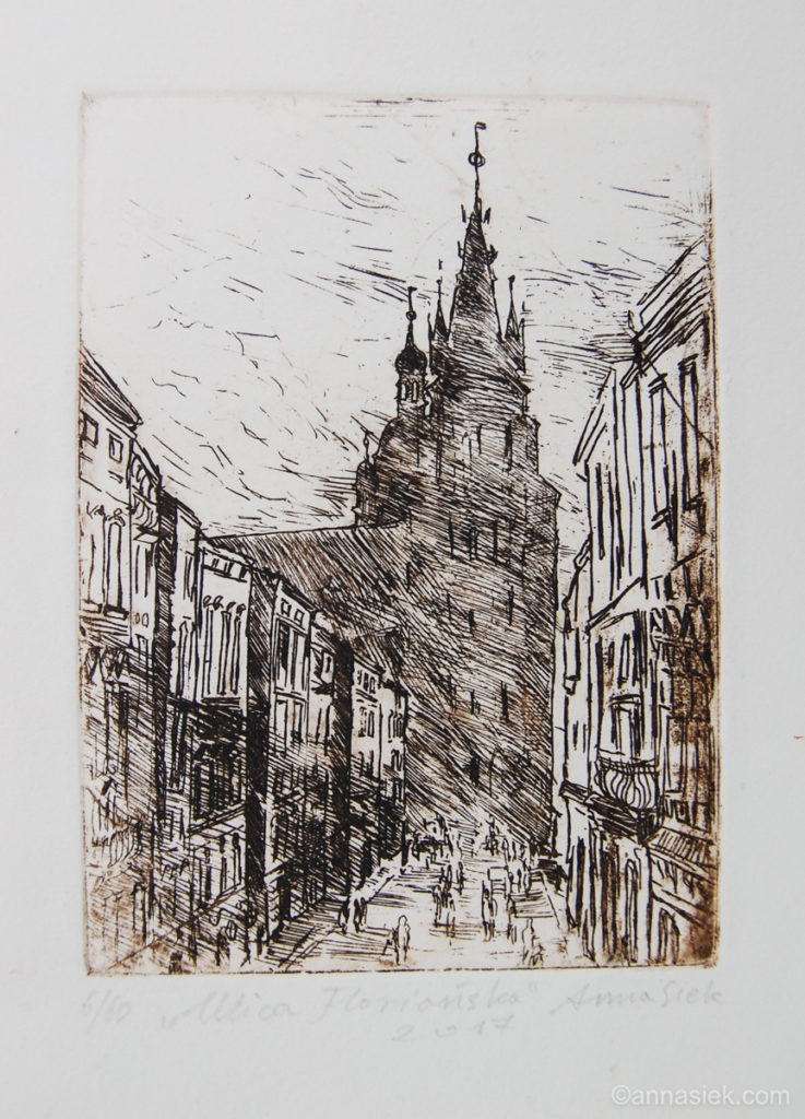 Graficzne pejzaże to głównie malownicze zakątki Krakowa, miasta które jest mi najbliższe, wykonane są w technikach akwaforty i akwatinty.